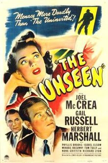 | *5*1945 Misterio en la noche Titulo original: The Unseen Dirección: Lewis Allen Guión: Hagar Wilde Raymond Chandler Ken Englund Música: Ernst Toch Fotografía: John F. Seitz Reparto: Joel McCrea, Gail Russell, Herbert Marshall, Phyllis Brooks, Isobel Elsom, Norman Lloyd, Mikhail Rasumny, Elisabeth Risdon, Tom Tully, Nona Griffith, Richard Lyon. Productora: Paramount Pictures Género: Drama, Terror Sinopsis: Un viudo reservado contrata a una institutriz para sus hijos, un niño voluntarioso y una niña impresionable. Sucesos extraños y la curiosidad de la institutriz la llevan a descubrir los secretos de la misteriosa y deshabitada casa de al lado. Año 1945 Duración 120 min. País Estados Unidos |